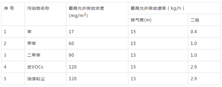 二、喷漆废气处理达标排放执行标准: